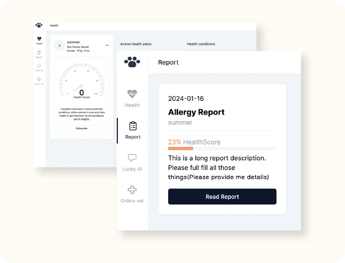 Once we receive your test results and questionnaire responses, our team of veterinary specialists will analyze the data. You'll then receive a comprehensive report detailing: Any identified health concerns or risks. Personalized diet and exercise recommendations. Natural remedies or routines that can help address specific health challenges.