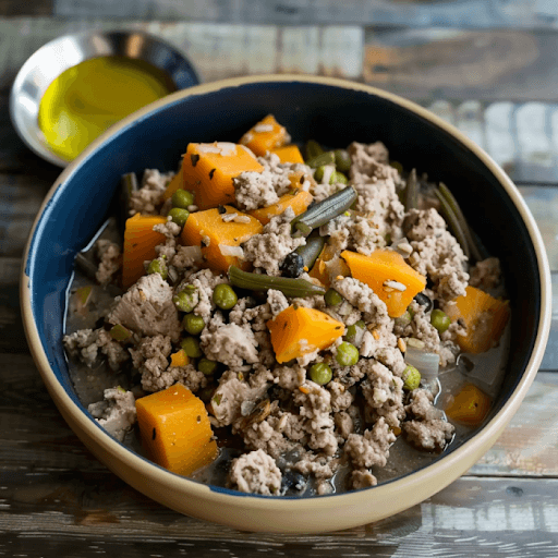 A nourishing stew featuring lamb and lentils, tailored for dogs with allergies and itchy skin.