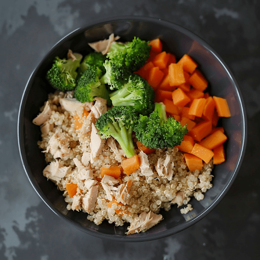 Mix Ingredients: In a large bowl, combine the flaked tuna, cooked quinoa, chopped broccoli, and chopped carrots. Stir in the olive oil and ground flaxseed until well mixed.