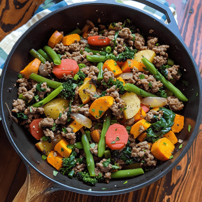 A nutritious medley featuring lean ground beef and a variety of vegetables, providing essential nutrients for your dog's well-being.
